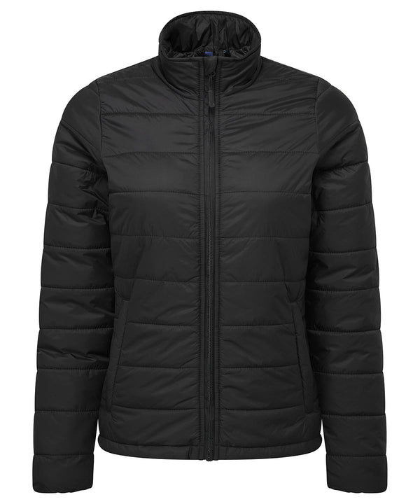 A lightweight and water-resistant padded jacket made from 100% recycled nylon and polyester for a great sustainable outerwear solution. Horizontal stitching across the jacket creates baffles to ensure even distribution of the insulation within. This women’s ‘Recyclight’ jacket is filled with recycled synthetic down for warmth, whilst also being lightweight enough to fold away in its own stuff sack. Full zip-through style with two zipped side pockets and a handy open pocket to the inner lining. A zip in the inner lining provides full embroidery access, offering a great corporate or teamwear solution that can be branded accordingly. The fashionable nature of this jacket also means it can be worn as an everyday leisurewear style.